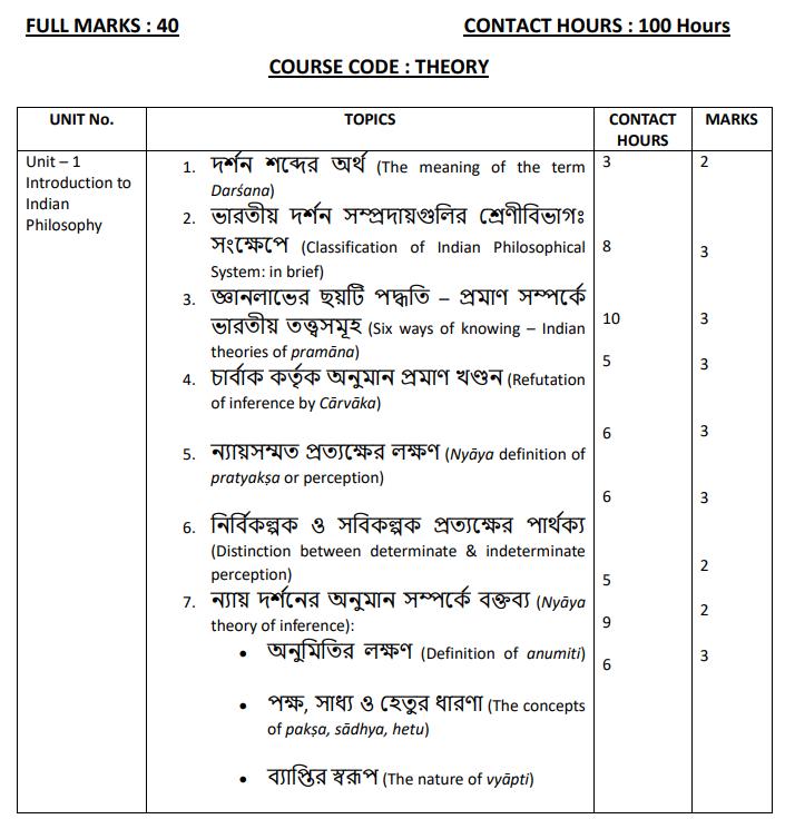 West Bengal Board Class 11 Philosophy Syllabus 2024-25