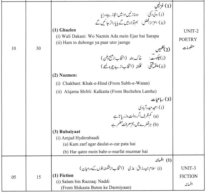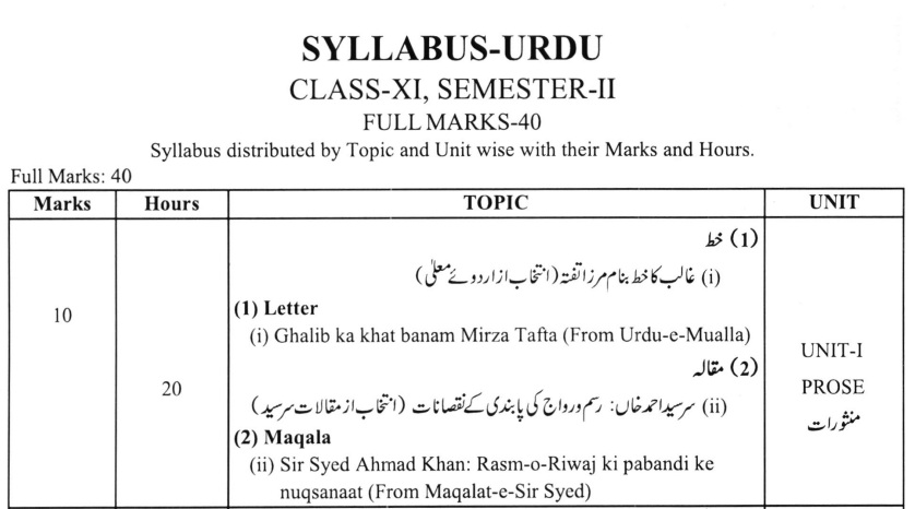 West Bengal Board Class 11 Urdu Syllabus 2024-25