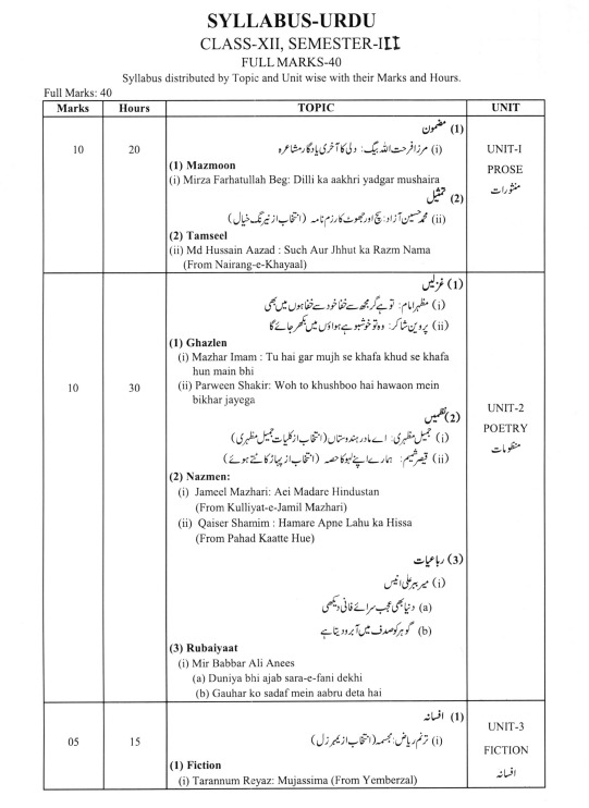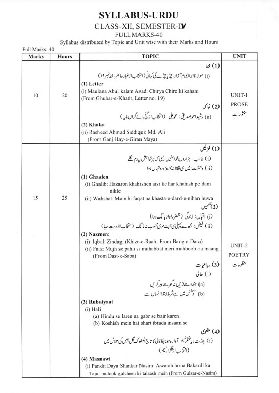 West Bengal Board Class 12 Urdu Syllabus 2024-25