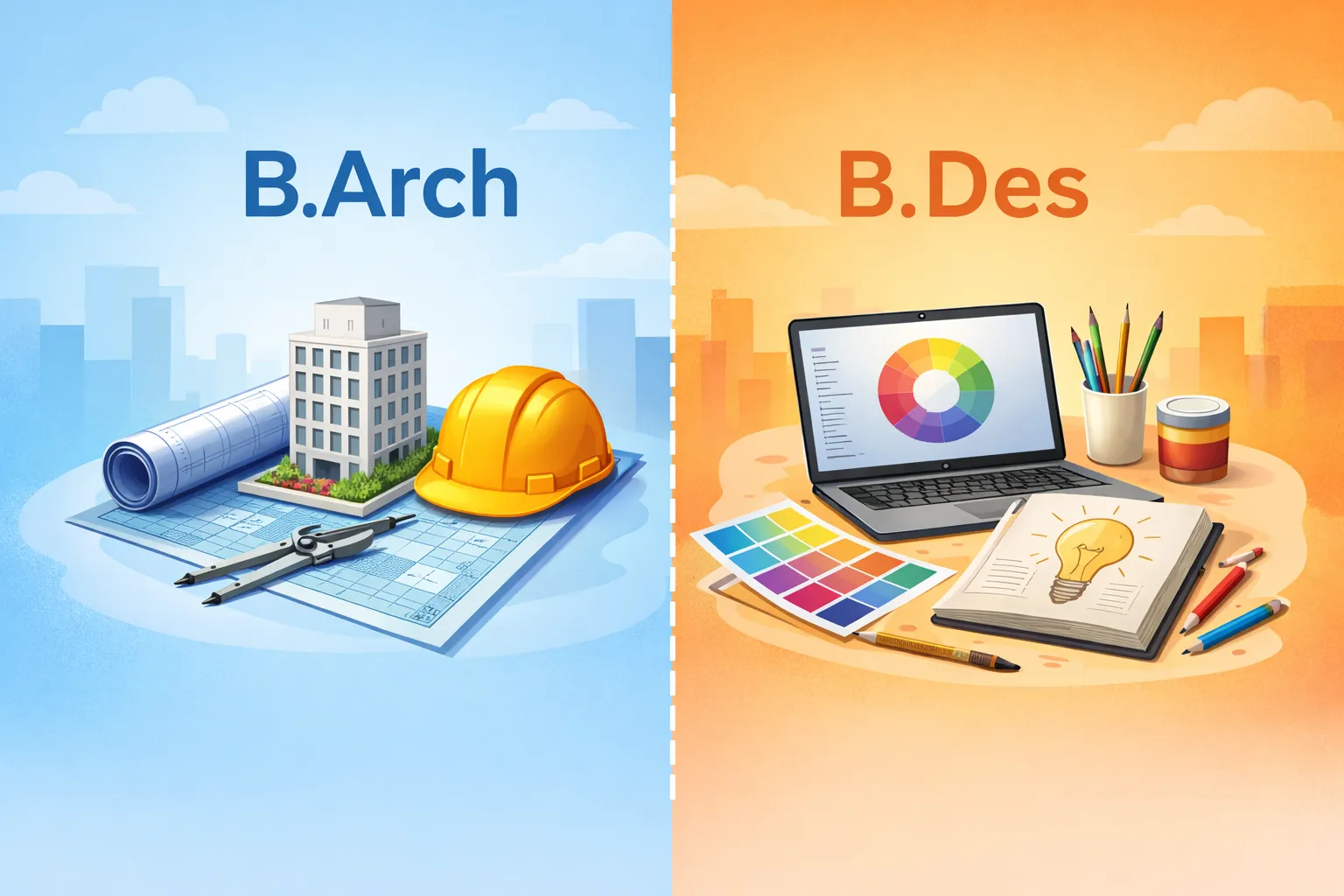 Picking a career in the creative world is exciting, but it can also be confusing. Two of the most popular choices are B.Arch (Bachelor of Architecture) and B.Des (Bachelor of Design). While both allow for lots of imagination, they lead to very different types of work. Here is a simple breakdown to help show what makes each one different.