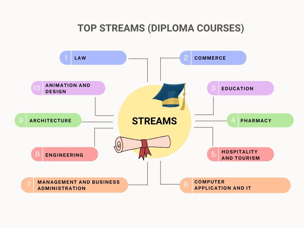 The top 10 streams available at diploma colleges in Bangalore are listed below. These programs represent the most popular and in-demand fields of study offered by the city's leading institutions.