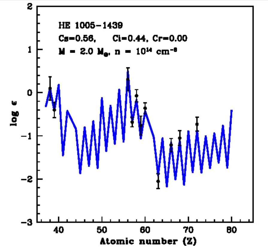 हालांकि तात्विक प्रचुरता को केवल सैद्धांतिक s-, r- या I-प्रोसेस मॉडल भविष्यवाणियों के आधार पर नहीं समझाया जा सकता है. तारे के बारे में और जानकारी एकत्र करने के लिए शोधकर्ताओं ने प्रेक्षित की उत्पत्ति को समझने के लिए भारी तत्वों की प्रचुरता का एक पैरामीट्रिक-मॉडल-आधारित विश्लेषण किया.