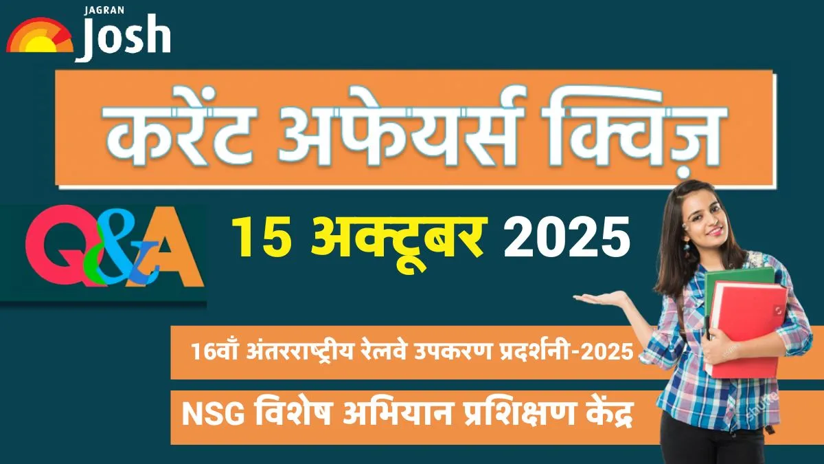 Current Affairs Quiz 15 Oct 2025: प्रतियोगी परीक्षाओं की तैयारी कर रहे विद्यार्थियों और जागरूक पाठकों के लिए जागरण जोश लेकर आया है इस सप्ताह का महत्वपूर्ण करेंट अफेयर्स क्विज. इस क्विज में NSG के विशेष अभियान प्रशिक्षण केंद्र से जुड़े सवाल शामिल हैं.