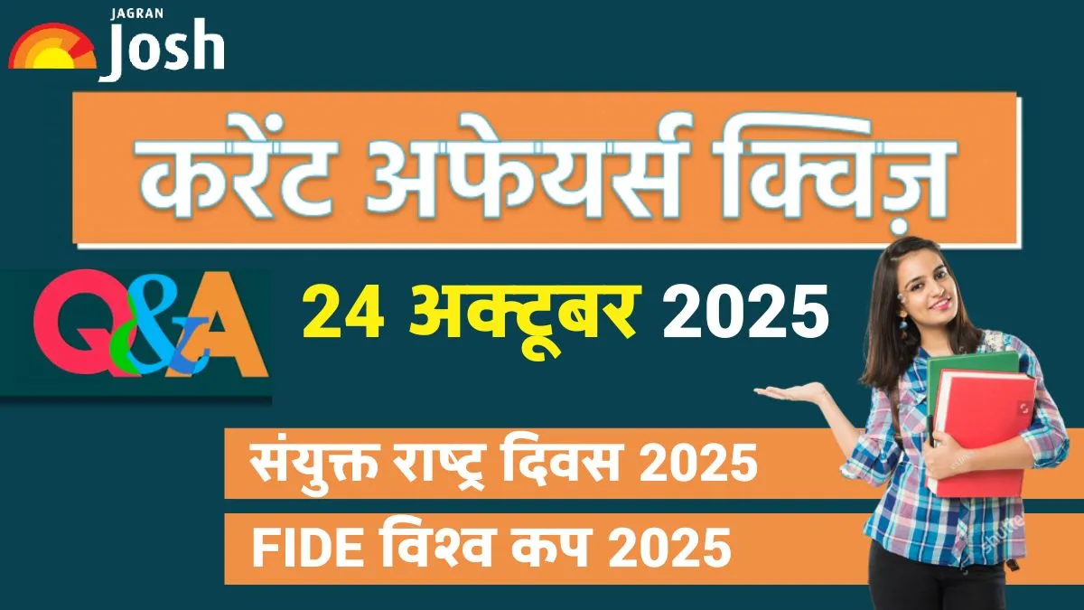 Current Affairs Quiz 24 Oct 2025: प्रतियोगी परीक्षाओं की तैयारी कर रहे विद्यार्थियों और जागरूक पाठकों के लिए जागरण जोश लेकर आया है इस सप्ताह का महत्वपूर्ण करेंट अफेयर्स क्विज. इस क्विज में संयुक्त राष्ट्र दिवस 2025, FIDE विश्व कप 2025 से जुड़े सवाल शामिल हैं.