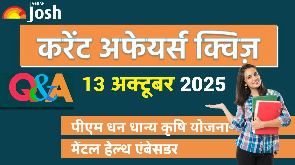Current Affairs Quiz 13 Oct 2025: प्रतियोगी परीक्षाओं की तैयारी कर रहे विद्यार्थियों और जागरूक पाठकों के लिए जागरण जोश लेकर आया है इस सप्ताह का महत्वपूर्ण करेंट अफेयर्स क्विज. इस क्विज में पीएम धन धान्य कृषि योजना और मिशन फॉर आत्मनिर्भरता इन पल्सेस से जुड़े सवाल शामिल हैं.