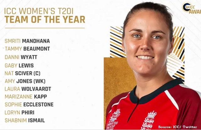 England's Nat Sciver was named the captain of the ICC Women's T20 Team of the Year 2021. The experienced all-rounder has displayed many impactful performances throughout the calendar year, both with the bat and ball. The middle-order batter scored a total of 153 runs including one fifty and picked up 10 wickets at an average of 20.20.