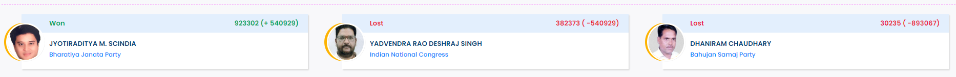 |   1  |        ज्योतिरादित्य सिंधिया (विजेता)  |        BJP  |