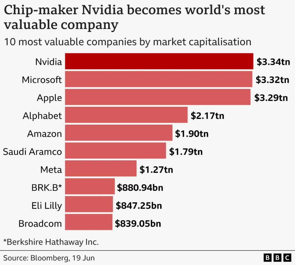 The Californian company's rapid ascent has been fueled by its dominance in the chips required for artificial intelligence (AI), which analysts call the "new gold or oil in the tech sector."