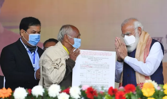 असम सरकार जनवरी, 2021 में कुल 01 लाख, 3 हजार लोगों को भूमि पट्टे देगी और यह वितरण की प्रक्रिया प्रधानमंत्री मोदी द्वारा शिवसागर में शुरू की गई है.