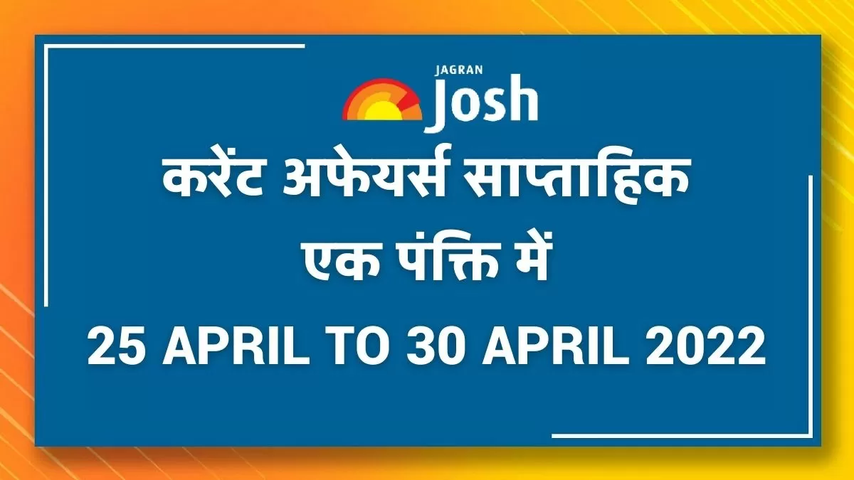 Weekly Current Affairs Hindi One Liners: जागरणजोश.कॉम अपने पाठकों की सुविधा हेतु साप्ताहिक करेंट अफेयर्स से सम्बंधित जानकारी को संक्षिप्त रूप में करेंट अफेयर्स साप्ताहिक एक पंक्ति शीर्षक से नए रूप में प्रस्तुत कर रहा है.
