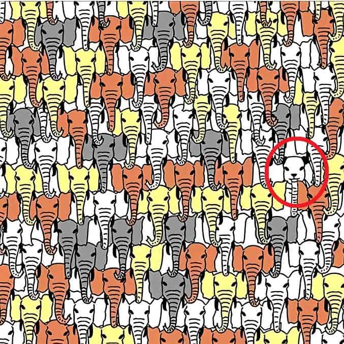 Then find the panda hiding among the elephants in 7 seconds.
