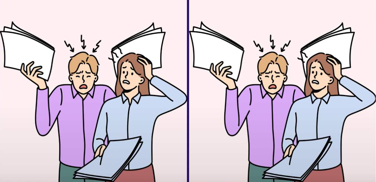 The image above depicts two identical pictures where you can see two people in the frame. A man and a woman are holding stacks of papers in their hands and look quite confused. The two seem to be employees of an organisation. Although the images are nearly identical, there are three differences between them. Can you find them all in 9 seconds?