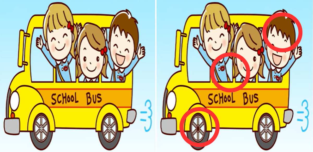 Time’s up. Were you able to spot all of the differences in the picture within 21 seconds? Congratulations to those who were able to identify the differences between the two pictures in the allotted time. If you failed to spot 3 differences between the two school bus pictures within 21 seconds, then you can scroll down to see the solution.