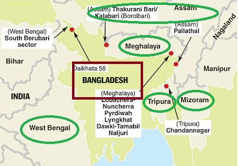 | बांग्लादेश किसके साथ सीमा साझा करता है | पश्चिम बंगाल असम मेघालय त्रिपुरा मिजोरम |
