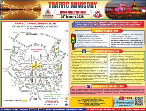 Traffic Advisory for Delhi: Beating Retreat Ceremony 2025