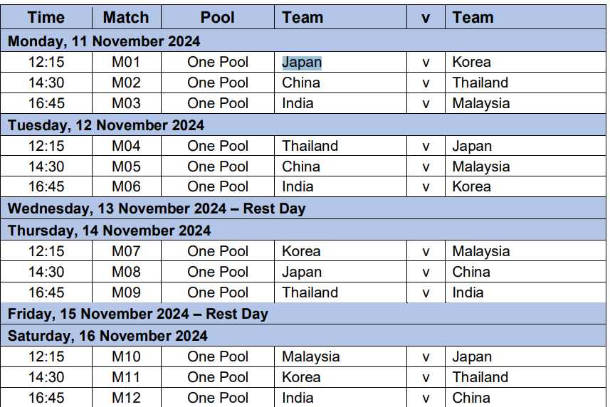 Women’s Asian Champions Trophy 2024: Full Schedule
