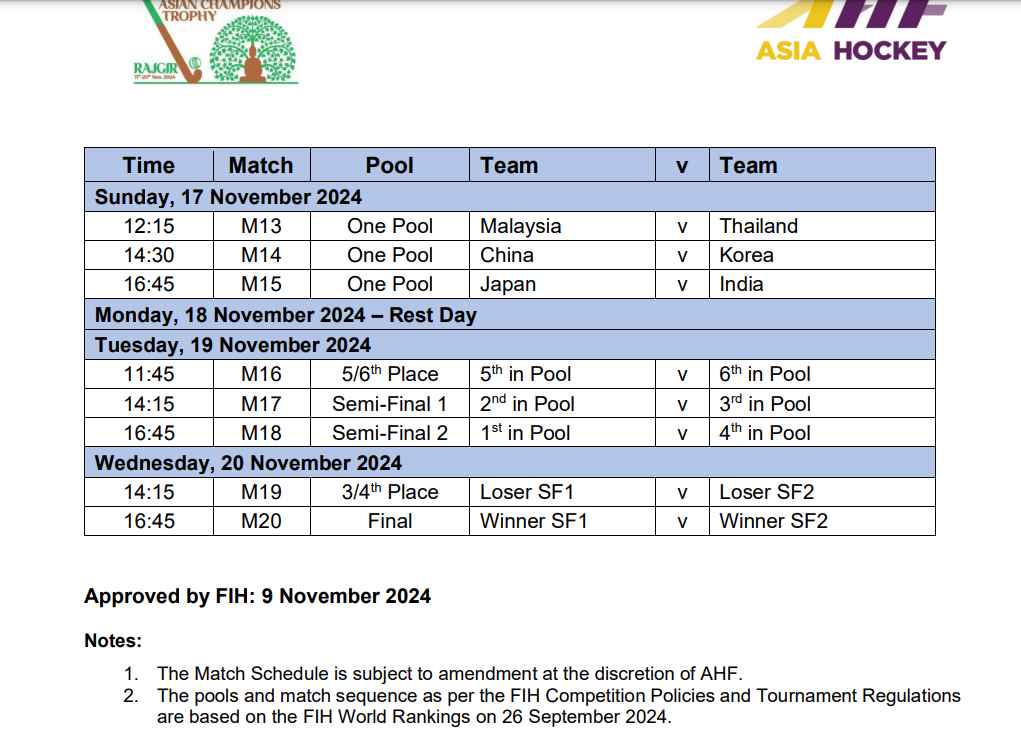 The Women’s Asian Champions Trophy is set to showcase thrilling matches featuring top teams from across Asia. Below is the schedule of matches during this tournament.