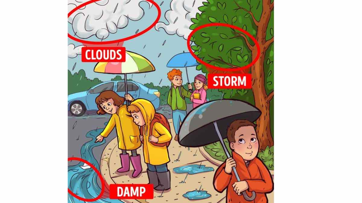 We have got you a rain-inspired brain teaser for the weekend. This Brain Teaser will test your skills like creativity and observational power instead of math formulas and logic. And as a result, it will strengthen the connection between brain cells, increase mental agility, and help with short-term memory problems. Enough words, now find the hidden the three hidden words in the picture.