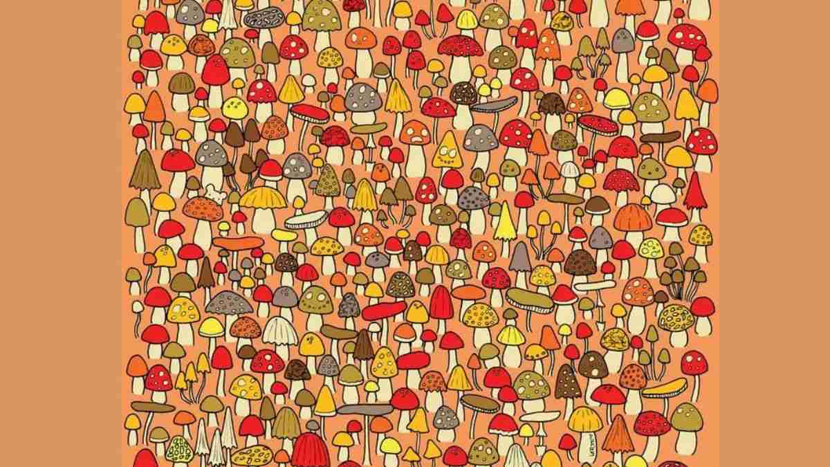 The goal for you is to find a notorious thief hidden between mushrooms. Mushrooms or toadstools, usually produced above the ground are depicted in the image in different colours, sizes, and shapes. And the thief here means one hidden animal, obviously different from the group of fungi. The trickiest part of this brain teaser is that the thief is similar to the size of mushrooms and also placed in a way that one can easily get distracted.