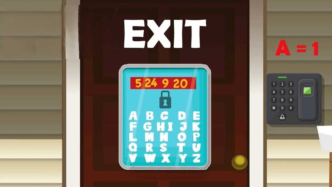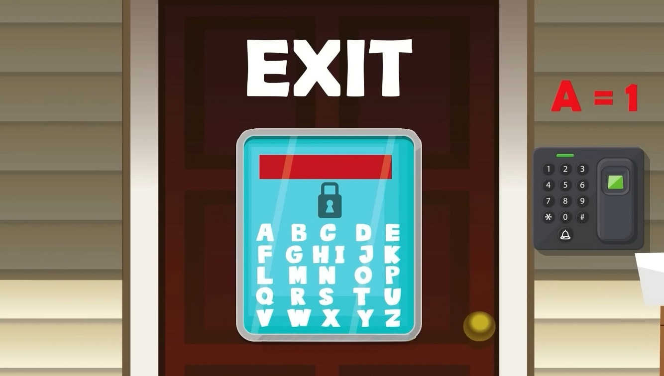 The image shared above depicts a door with EXIT written and a space for a secret code. Also seen on the right of the image is a number pad for typing in the code.