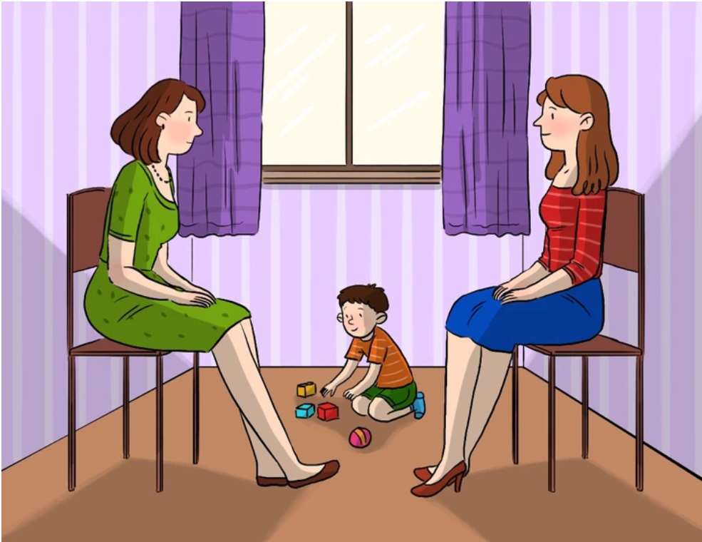 In this brain teaser picture, you can see a boy playing on the floor with his toys. Near the boy are sitting two women. One of the women is the boy’s mother.