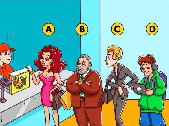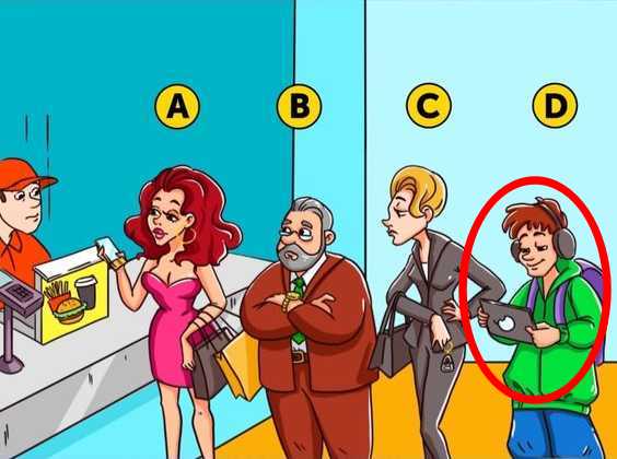 If you look closely at all four people standing at the billing counter, you will notice that person D is holding a device that although looks like an iPad, is not one. It has a mango logo on it whereas the iPad comes with a bitten apple logo.