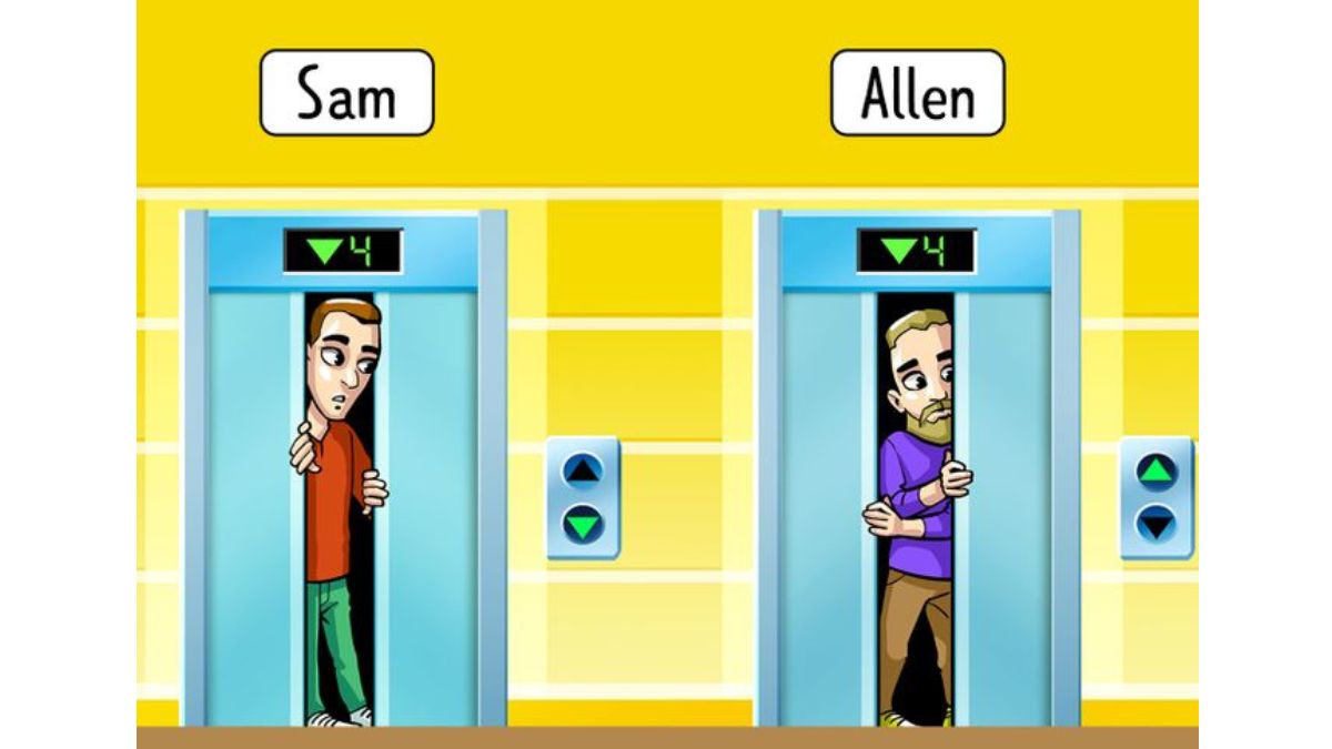 The image shows two men Allen and Sam trying to reach their desired floors in the apartment. And your task is to find who is not acting enough smart. Go through both sections, and use all your skills like logical reasoning, observational power, and other abilities to conclude this mental exercise.