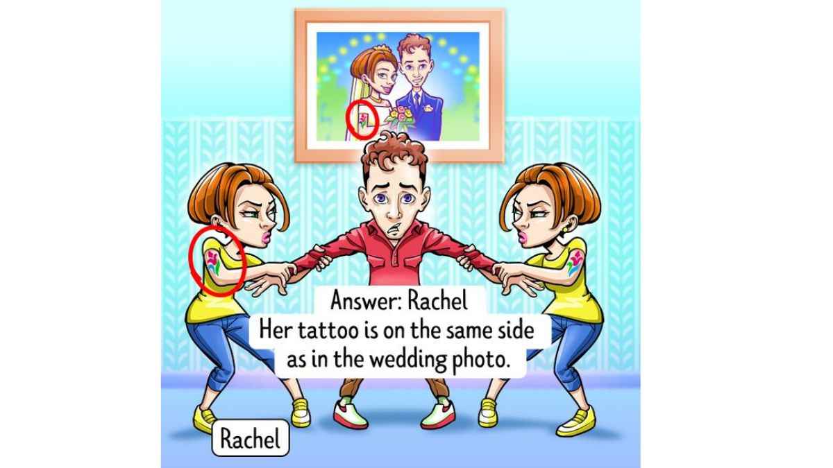 The two twins Rachael and Sarah are fighting over a man. Do you have the eyes for details to find the woman who is not lying in this brain teaser? A Brain Teaser usually tests skills like creativity and observational power instead of math formulas and logic. And as a result, it will strengthen the connection between brain cells, increase mental agility, and help with short-term memory problems. Enough words, now find the real wife of the man in the Picture.