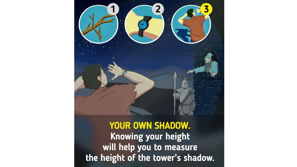 A brain teaser usually tests skills like creativity and observational power instead of mathematical logic and formula. And as a result, it will strengthen the connection between brain cells, increase mental agility, and help with short-term memory problems. Enough words, coming back to action, your task is to find the right way to measure the height of the evil tower.