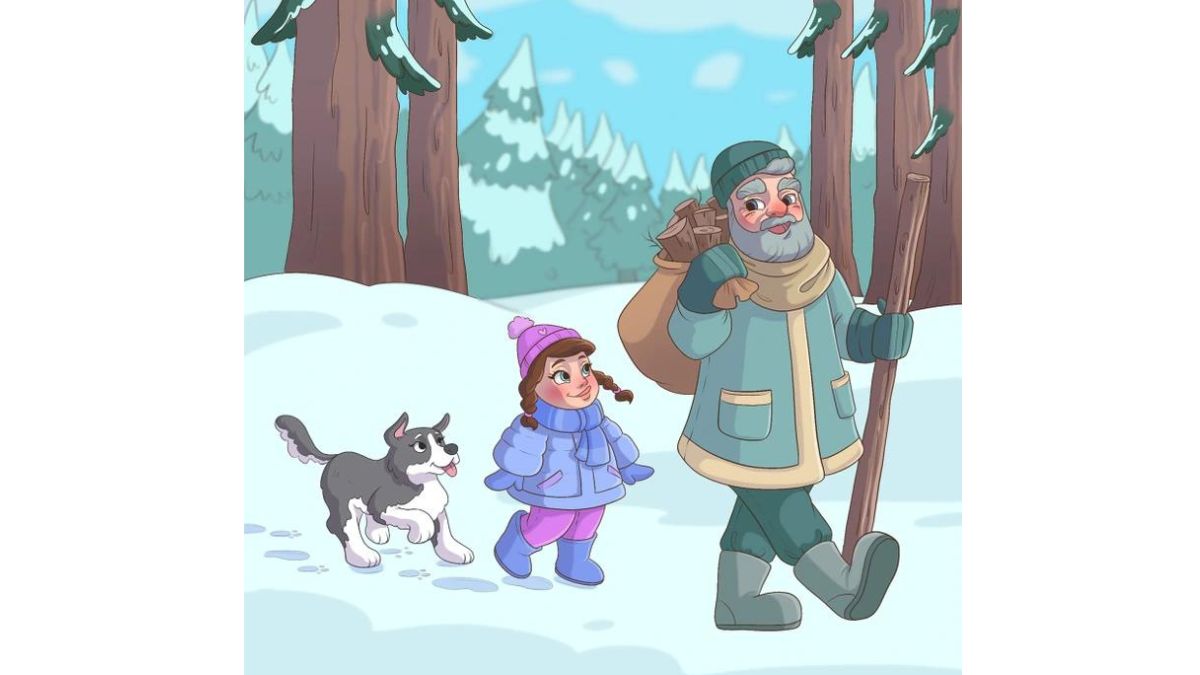 Grandpa and his little jolly are out snow trekking with a little puppy. But as it is a brain teaser there is surely something wrong with the picture. Can you find that one mistake hidden in this picture?