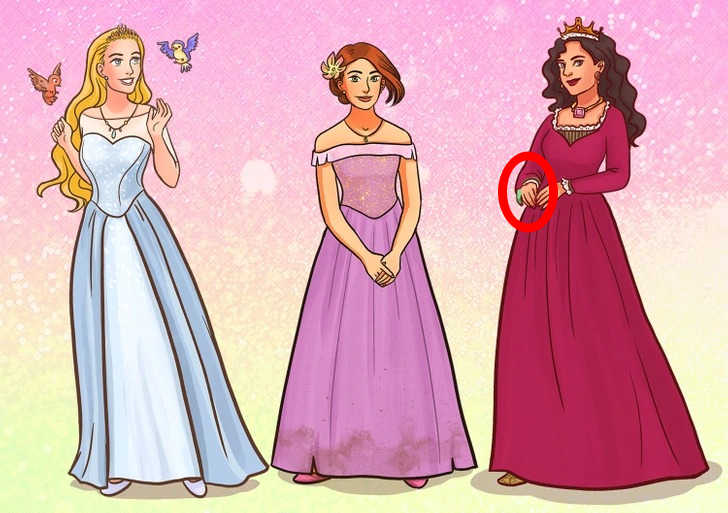 In the image shared above, you can see three ladies standing wearing royal dress.