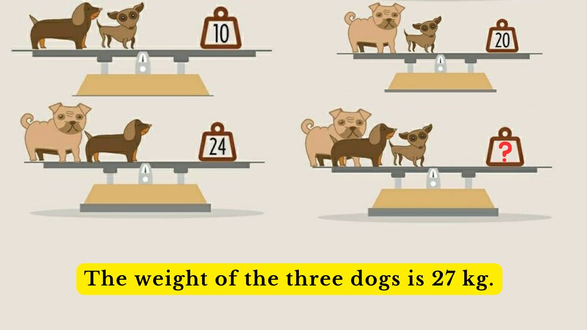 You have to find the combined weight of the three adorable dogs in this brain teaser puzzle.