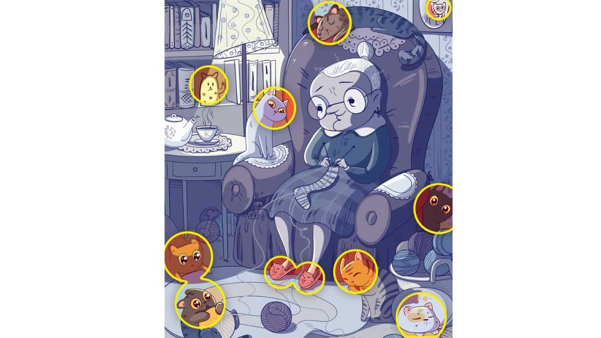 Hurrah, if you successfully spotted all the cat faces., And if you are still missing the answer, or confused about your favorite animal of Grandma Ann then encircle all the animals or animal faces. Count the number and you will have the right answer!