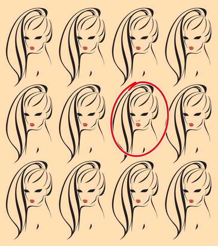 In this brain puzzle, you need to find out that one woman is different from the other women in the group. There are 3 rows and 4 columns filled with similar-looking women. To find the odd woman out within 9 seconds you need to look quickly through all rows and columns.