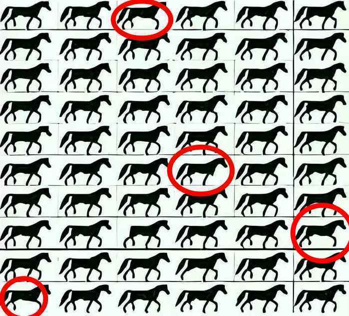 Brain Teaser IQ Test: Find 4 Three Legged Horses in Picture