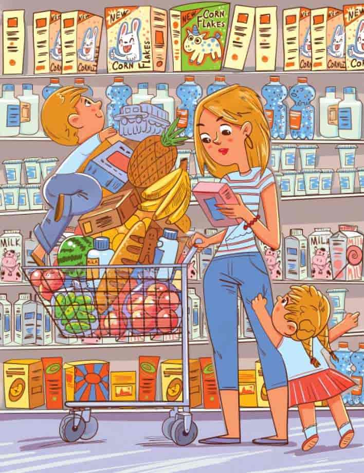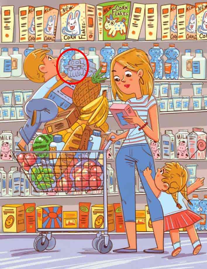 A supermarket scene is presented in this brain teaser.