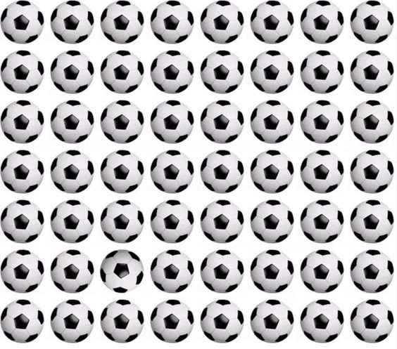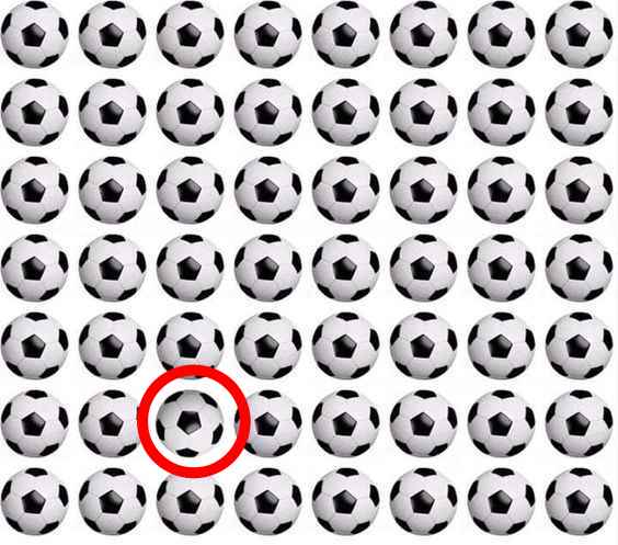 One football is different from the rest in the picture, and the challenge for the readers is to spot it in 4 seconds.