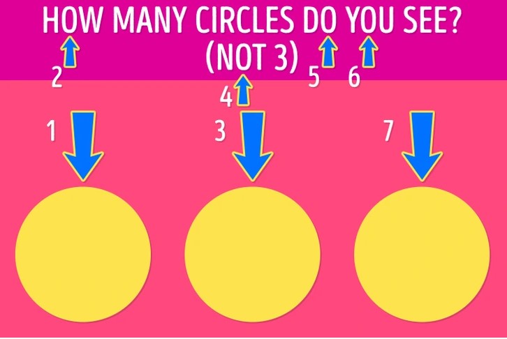 In this brain puzzle, you need to find out the number of circles inside the picture. At first, you might see only 3 circles in the picture. However, there are 7 circles in the picture if you look carefully. Apart from 3 yellow circles, there are 4 more circles hidden in the question and the hint.