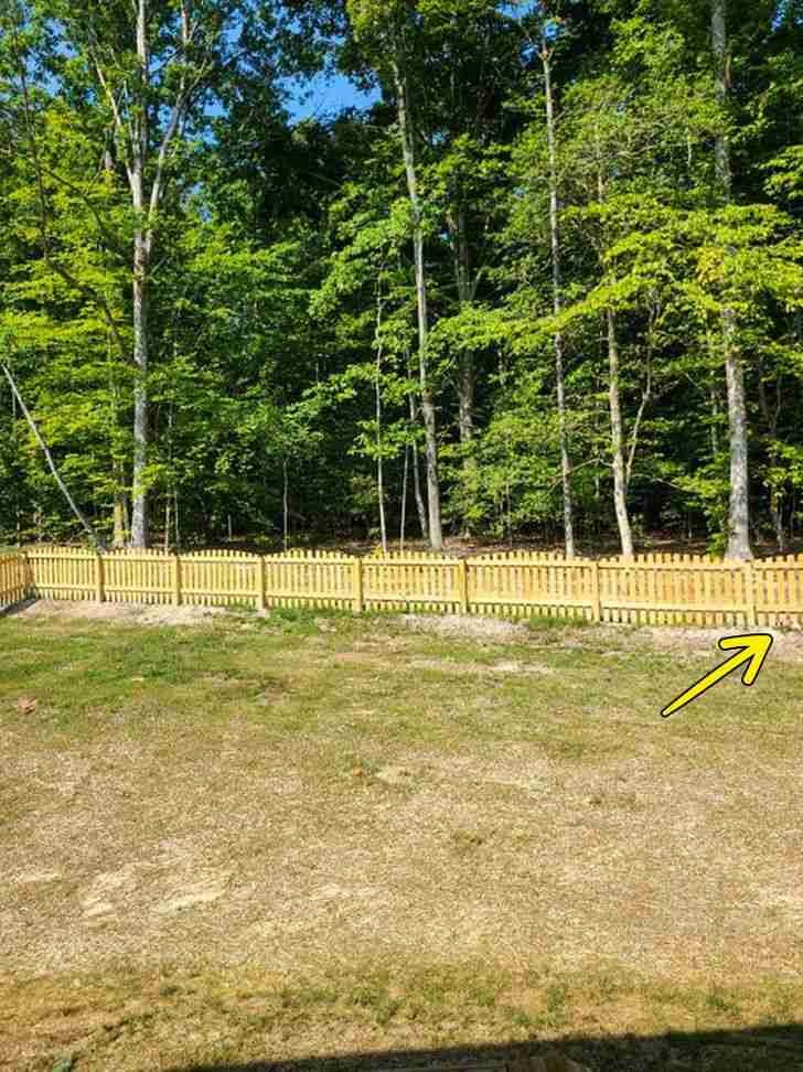 In this brain teaser picture riddle, you can see a big backyard and the woods behind it. You can see the wooden fence, the grassy ground, and the lush green trees. But what you cannot see is a dog.