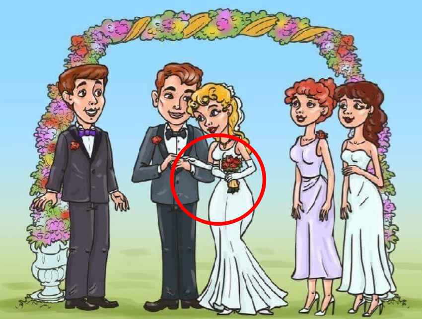 The alien is the bride herself, she has three hands which is unusual for a human.