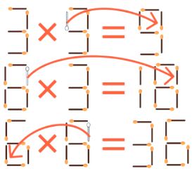 In the second equation, the match should be taken from the eight and added to the number 6. The correct equation will be 6 x 3 = 18.