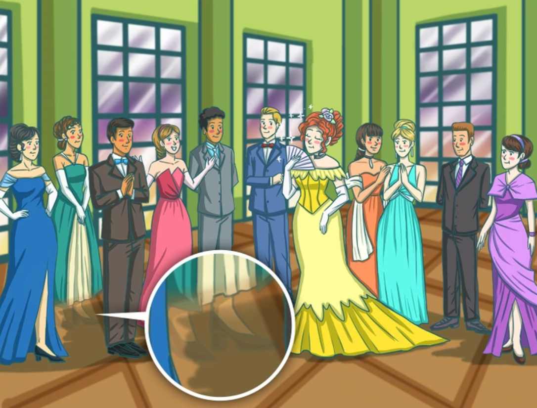 The image above is of a ballroom. There are men and women dressed up in fancy gowns and tuxes. If you think that the ballroom is full of rich men and women, you will be wrong. One of the attendees at the ball is a ghost. The ghost is perfectly hidden in the picture with the other attendees. As you already know, you have to spot the ghost within the time limit. The time limit that we have set for this brain teaser picture puzzle is 6 seconds.