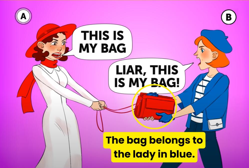 The solution to his visual puzzle lies in the picture itself. All you need to do is observe the image and the object in question carefully and you will easily find out who the bag belongs to. We have revealed the solution at the bottom. However, do not skip straight to the solution and cheat. You need to at least try.