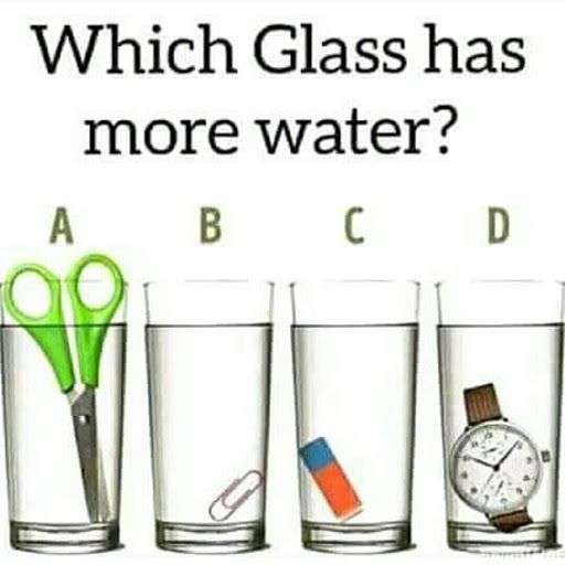Now, your task for this particular brain teaser is to try to find the glass of water that contains the most water.
