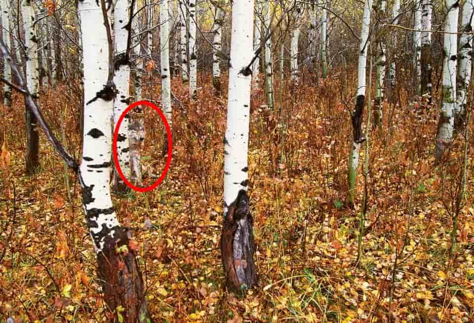The wolf can be seen hiding behind the second tree on the left side of the picture.