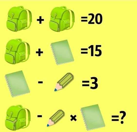 Genius IQ Test - Find the Value of Notebook, Bag and Pencil in 9 Seconds