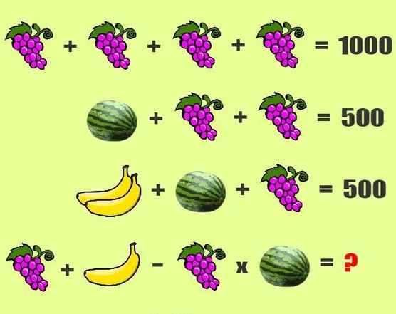 2 Banana + Watermelon + Grape = 500