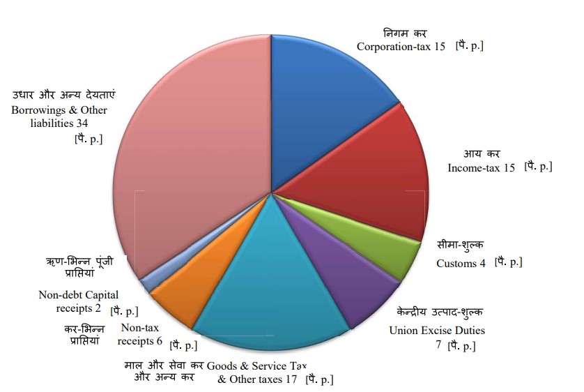 आप नीचे दिए चित्रों के माध्यम से समझ सकते हैं कि भारत में रुपया प्राप्ति के स्त्रोत क्या हैं और इसका व्यय कहा-कहां होता है।
