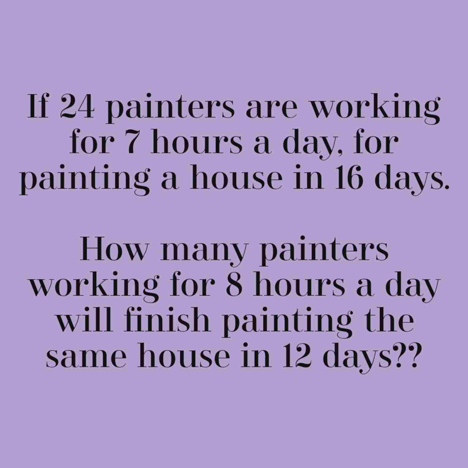 x painters working for 8 hours a day paint the house in (16 × 24 × 7)/(x × 8) days