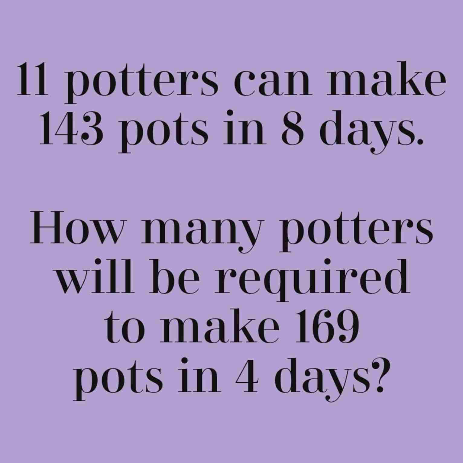 11 potters can make 143 pots in 8 days.
